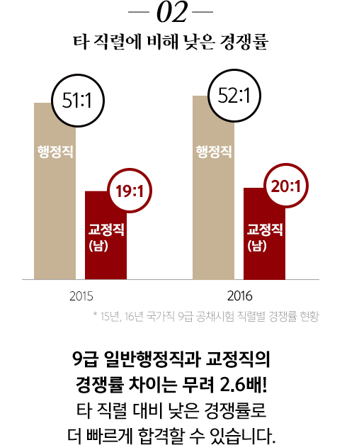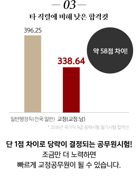 하지만, 낮은 경쟁률과 합격 컷만 생각하고 도전하기에 교정직 공무원은 결코 쉬운 길이 아닙니다. 전공지식에 대한 이해, 직무에 대한 전문성! 반드시 필요합니다!